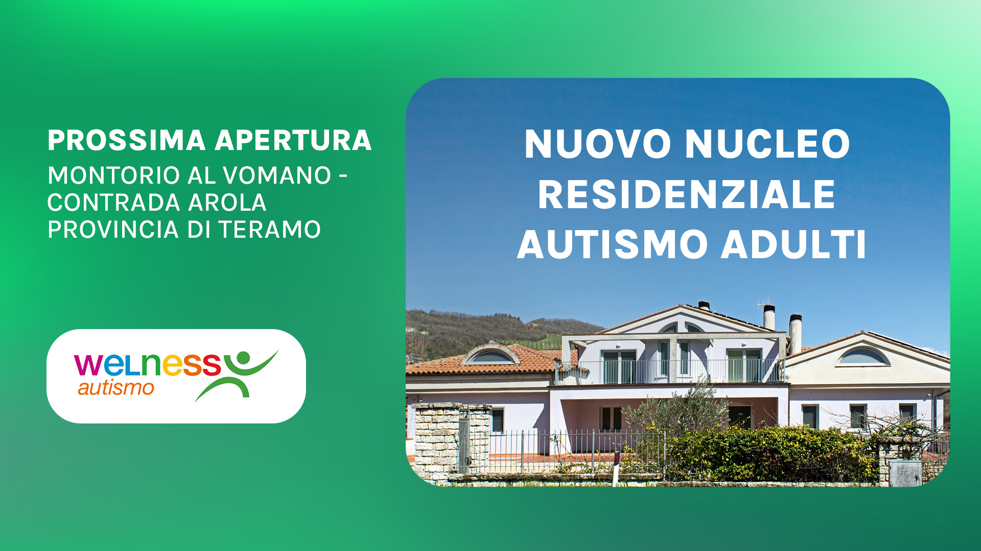 AD INIZIO 2025, E’ PREVISTA L’APERTURA DEL NUCLEO RESIDENZIALE PER AUTISMO ADULTI “DR.G BONADUCE” SITO IN C.DA AROLA N. 20 NEL COMUNE DI MONTORIO AL VOMANO.